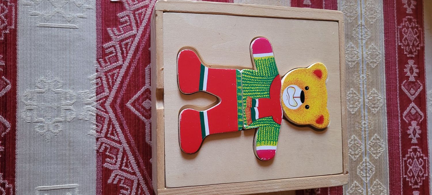 Ours a habiller en bois 14cmx13cm poids 260gr puzzle.